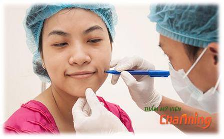 – Bác sĩ đánh dấu vị trí sẽ tạo hình thẩm mỹ má lúm đồng tiền