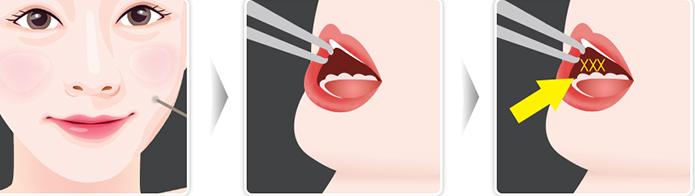 – Tạo một nốt nhỏ bên trong niêm mạc má, rồi dùng một mũi khâu nhỏ với chỉ tự tiêu đính cơ và mặt dưới da tại vị trí tạo má lúm để khi cơ co rút sẽ kéo da vào bên trong hình thành vệt lõm – má lúm.