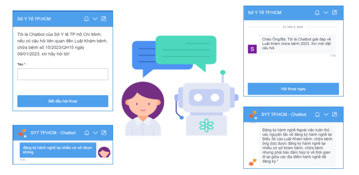 Bất kỳ ai có những câu hỏi hay thắc mắc liên quan đến các quy định pháp luật trong lĩnh vực khám bệnh, chữa bệnh hãy vào địa chỉ https://chat.khambenh.gov.vn để được giải đáp. Đây là ứng dụng được tích hợp giữa mô hình NLP xử lý ngôn ngữ tự nhiên và mô hình Máy học giúp hiểu và đáp ứng các câu hỏi của người dùng một cách tự nhiên và chính xác và sử dụng các công nghệ mới, hiện đại như Rocket.Live, Rasa AI Conversational Platform, MongoDB, Python, và Linux. Chatbot hỗ trợ giải đáp các câu hỏi liên quan đến Luật khám bệnh, chữa bệnh nhờ được xây dựng từ dữ liệu câu hỏi (ngân hàng câu hỏi với hơn 800 câu hỏi do các cơ sở y tế gửi đến),  các câu hỏi và câu trả lời này được biên soạn, cập nhật, bổ sung liên tục từ các phòng chuyên môn nghiệp vụ của Sở Y tế và các cơ sở khám chữa bệnh.