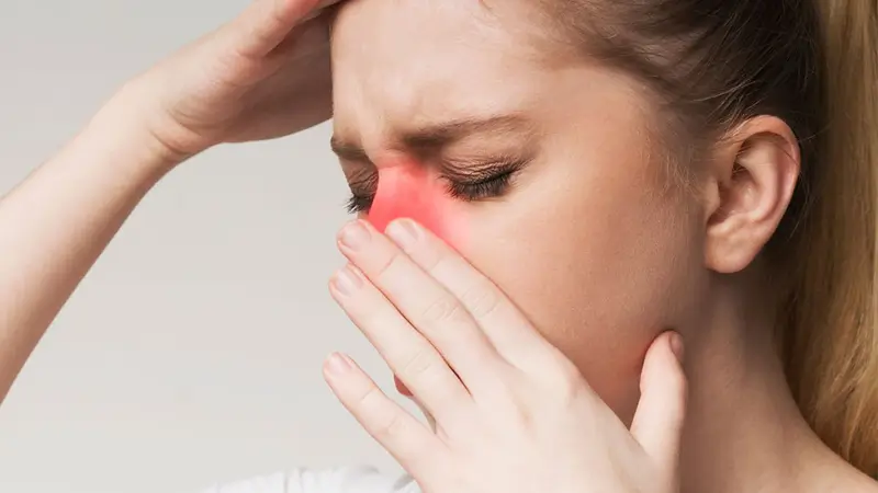 Hình ảnh mũi bóng đỏ đau nhức vì viêm nhiễm