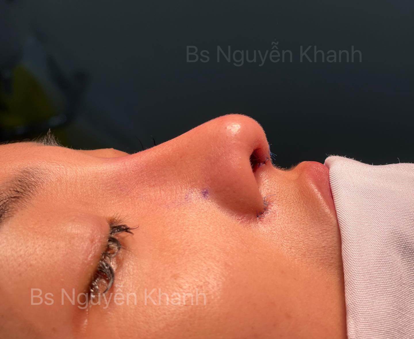 Hình khách sau phẫu thuật nâng mũi cấu trúc gây mê