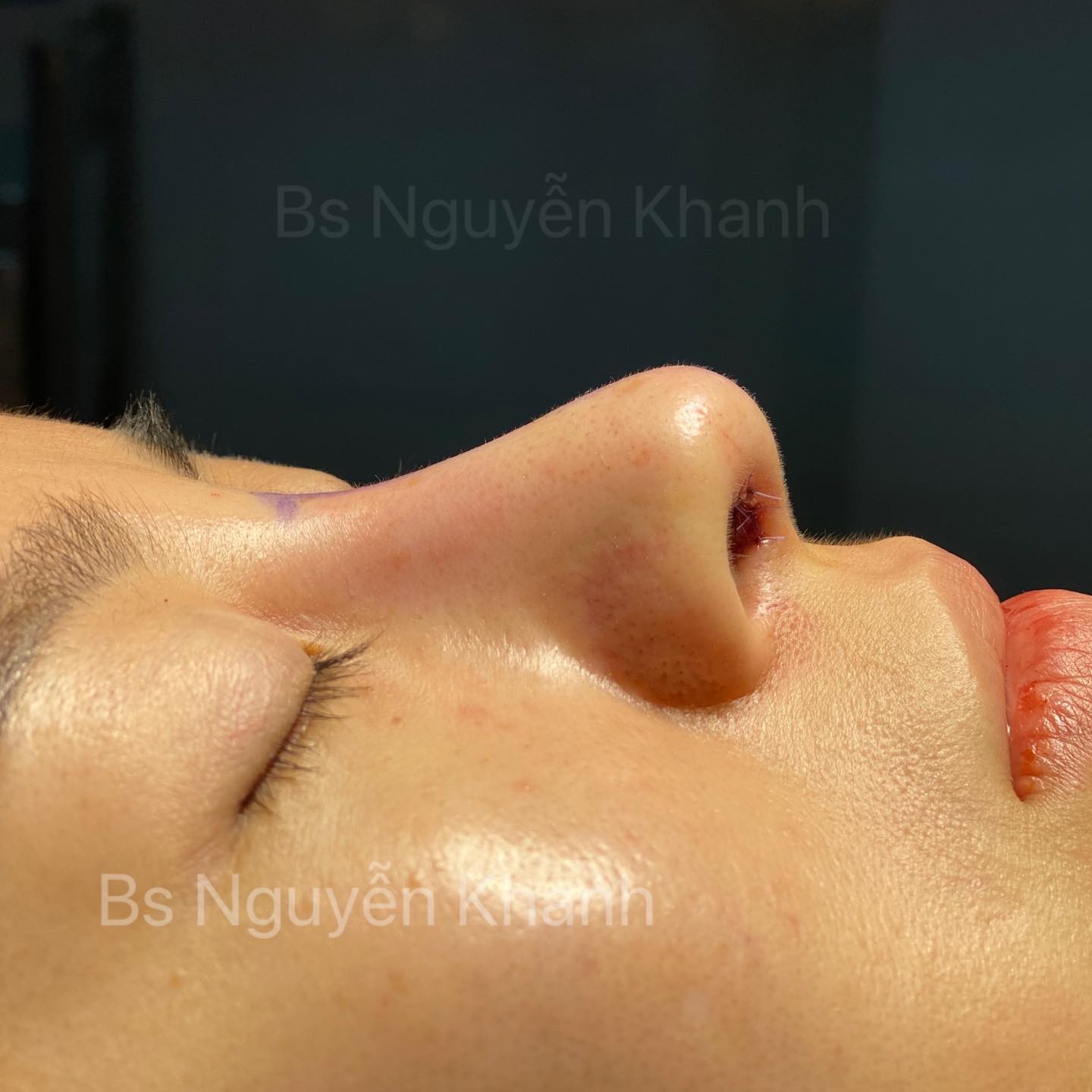 Hình ảnh mũi của bạn khách sau phẫu thuật lót thêm trung bì cho mũi