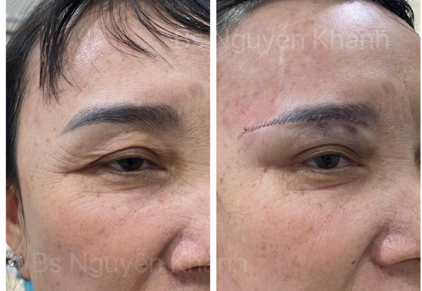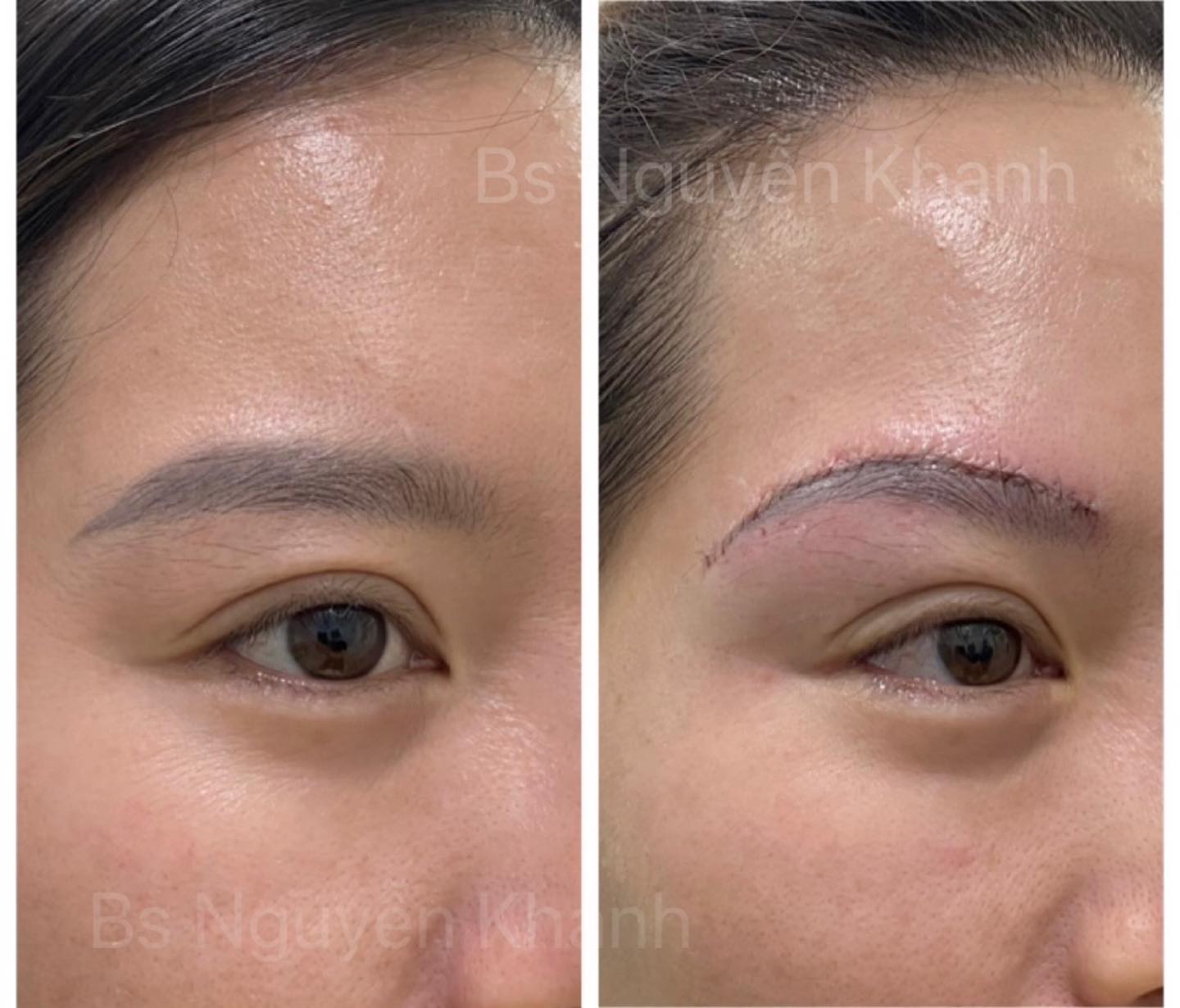 Trước và sau, giấu sẹo trong đường xâm cũ, đôi khi kg cần xâm lại dáng cung mày