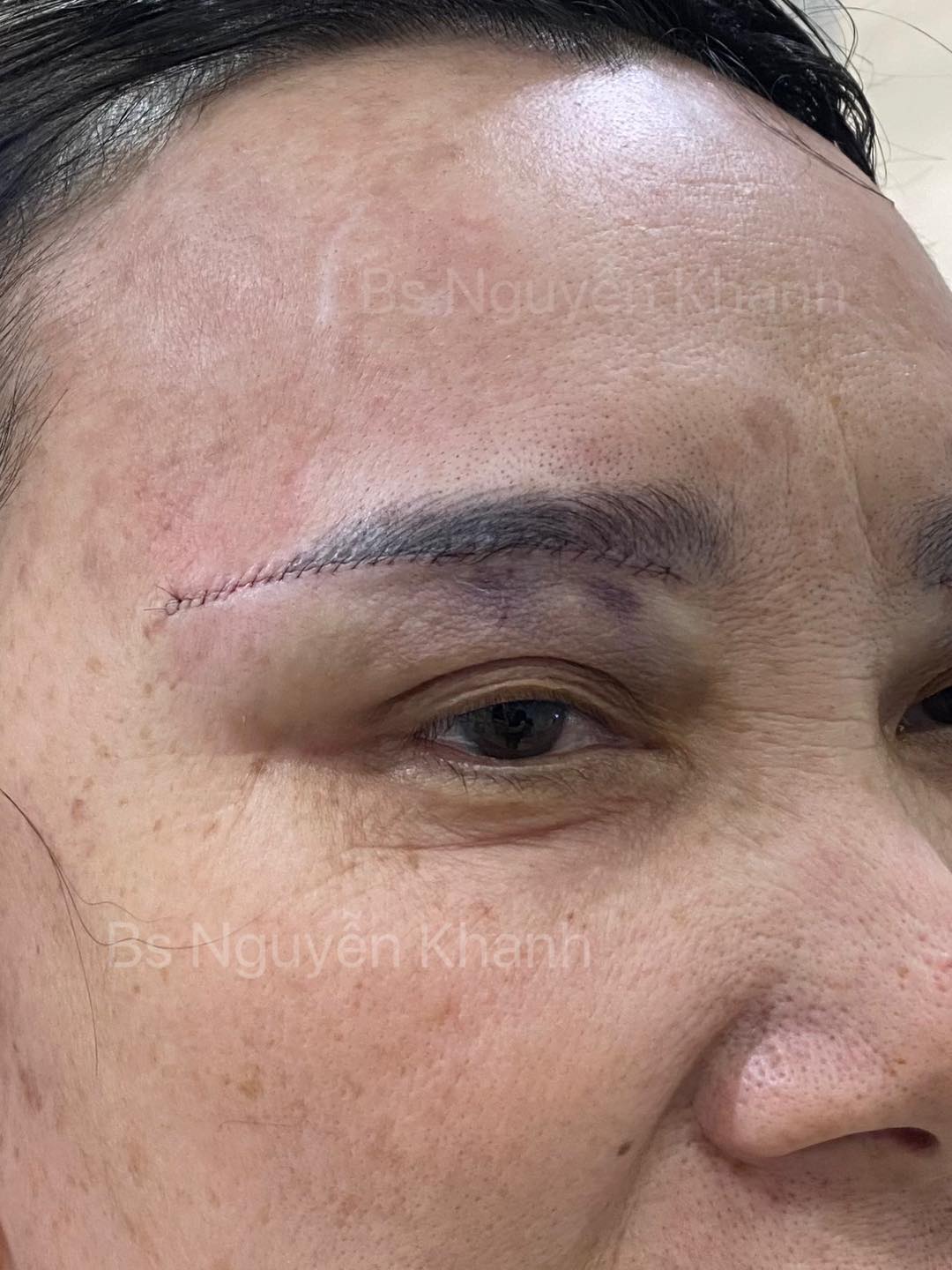 – Da đuôi mắt sụp rất nhiều.