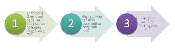 - Trường hợp mũi gồ ở sóng mũi, đầu mũi thấp.