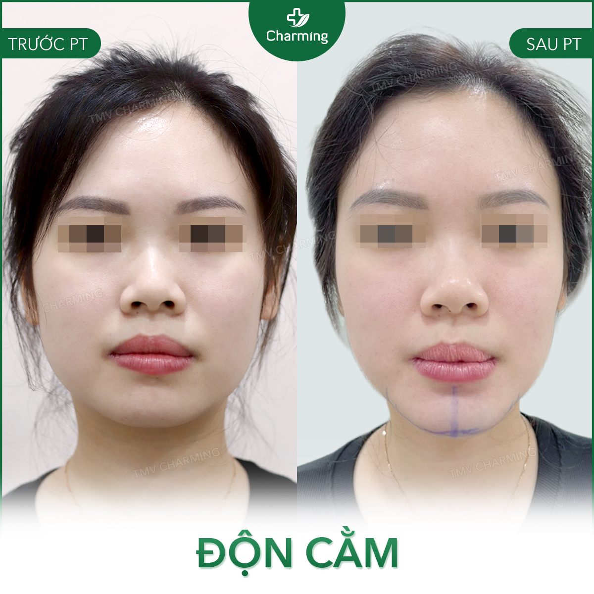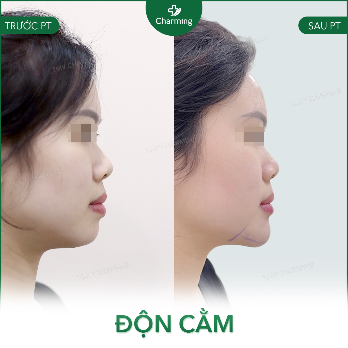 Với kĩ thuật độn cằm cùng với dáng cằm V line mới nhất được áp dụng tại Thẩm mỹ viện Charming, chúng tôi đang tạo nên bước đột phá rất lớn trong kĩ thuật độn cằm, tạo nên 1 khuôn mặt đẹp gần như không cần phải cắt thêm góc hàm (trừ những trường hợp góc hàm quá to), chúng tôi đã hoàn toàn hạ thấp được tỉ lệ yêu cầu gọt mặt, nhằm hạn chế được tỉ lệ gây mê và cắt trực tiếp vào xương (đây là hai vấn đề mà khách hàng lo lắng nhất khi muốn gọt mặt).