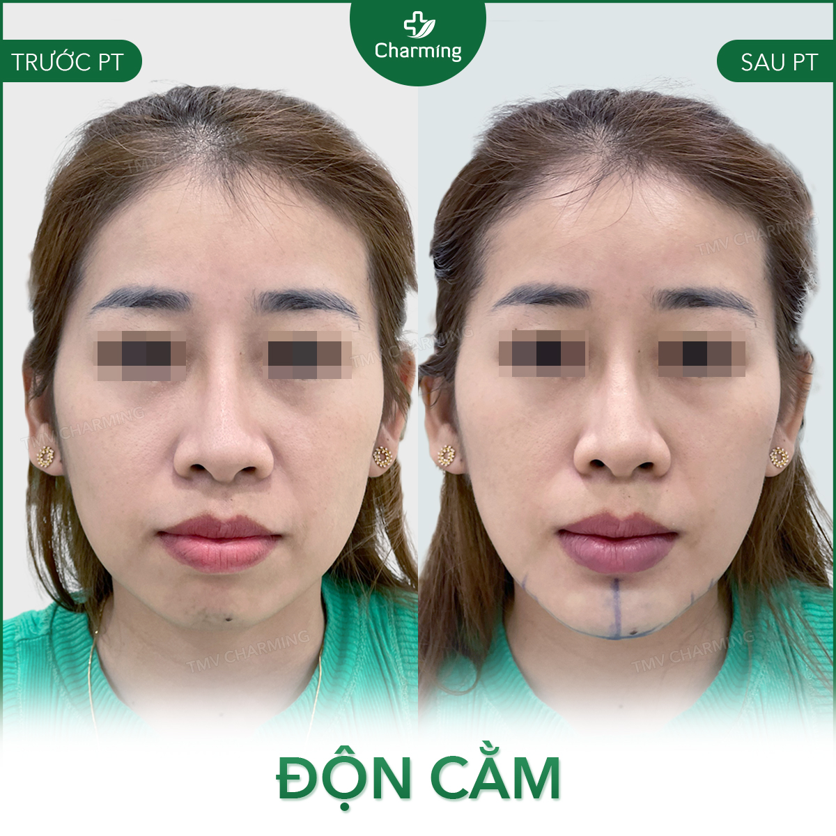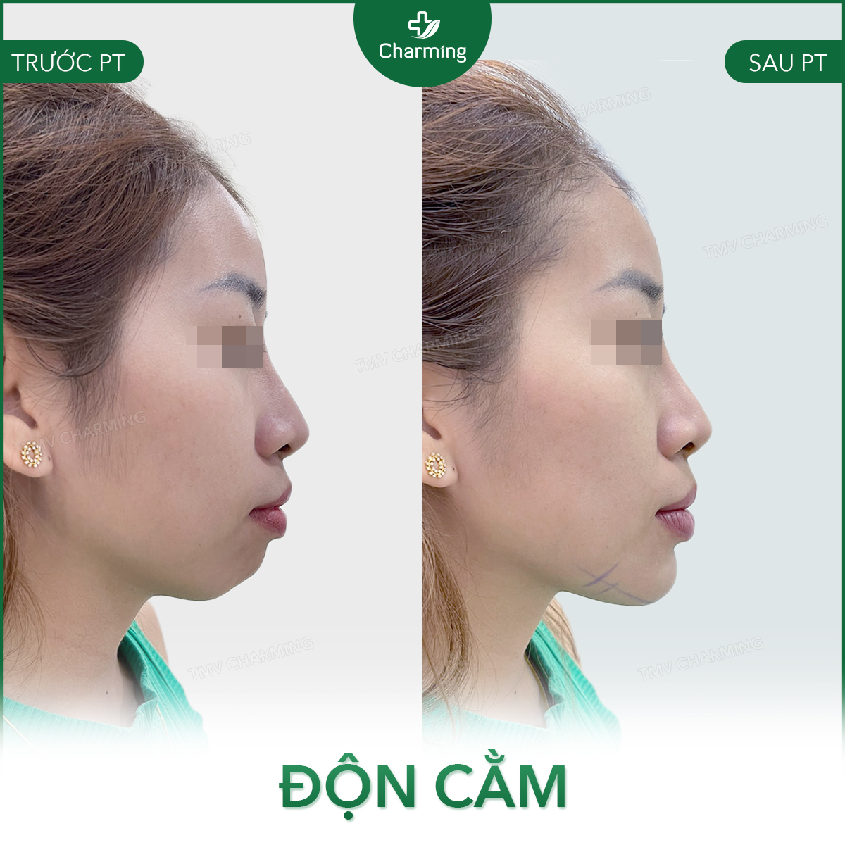 Góc trực diện khách hàng trước và sau phẫu thuật độn cằm tại Charming